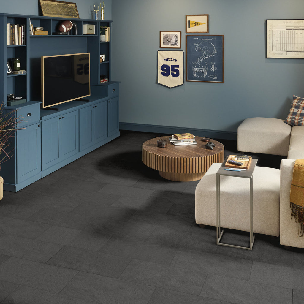 Paragon Tile Plus features 100% waterproof 12” x 24” tiles built to endure stains, scuffs, spills, and dents from high traffic and extreme conditions. Plus, it saves you time and money on easy installation with no messy grout, adhesives, or subfloor prep—simply install and live on in the same day. All Paragon Tile Plus styles come with ScufResist Platinum® finish and attached Soft Silence® acoustical pad.